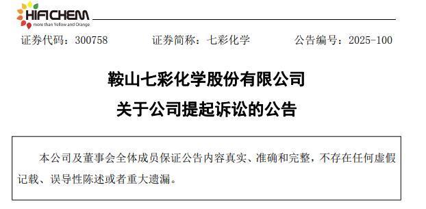 七彩化学称,本次诉讼不影响公司日常筹谋的平时开展。鉴于本次涉诉案件尚未详情开庭时代,最终该诉讼的判决后果存在省略情味,对公司本期及期后利润的影响存在省略情味,敬请投资者防护投资风险。